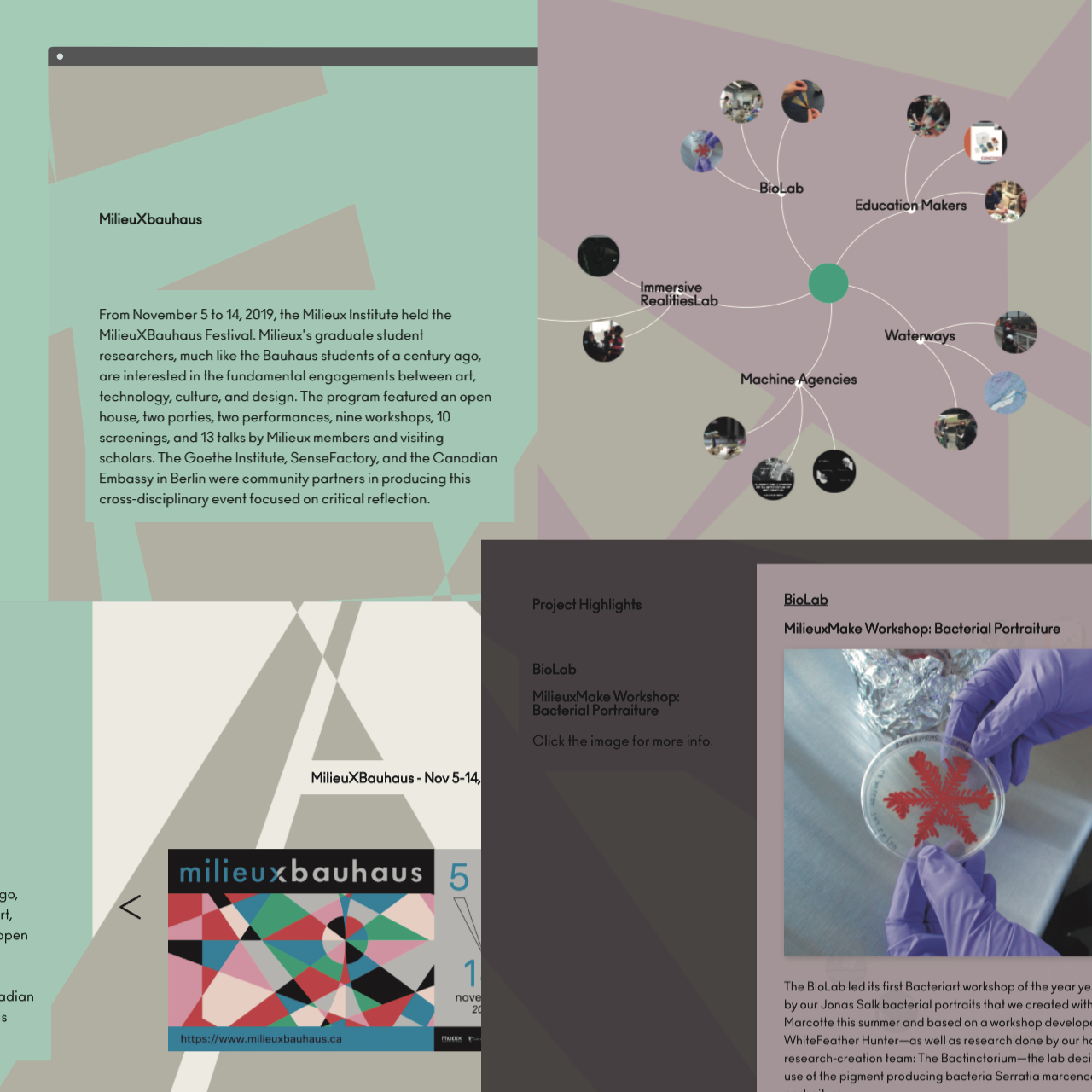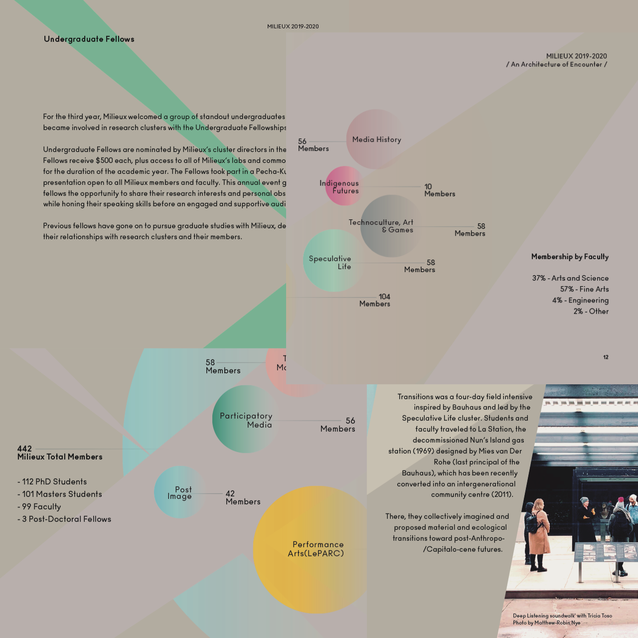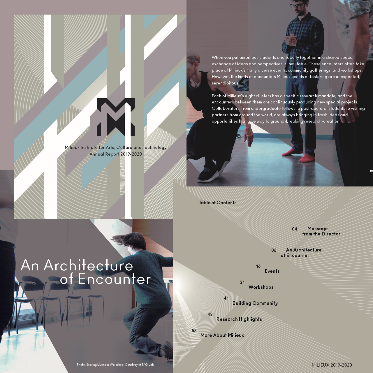 Diseño para el Informe Anual 2019-2020 del Milieux Institute que incluyó la programación de un sitio web Report Highlights, así como la publicación digital e impresa del informe. Fue creado en coordinación con Milieux y ha sido un gran placer contribuir a un equipo vibrante que promueve la investigación-creación en arte y tecnología.